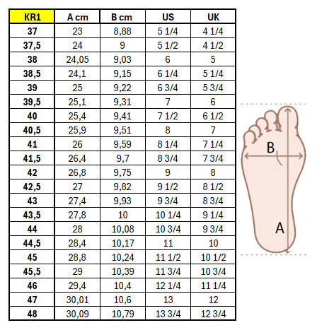 Velikosti: od 37 do 47, půlčísla 37,5 - 45,5